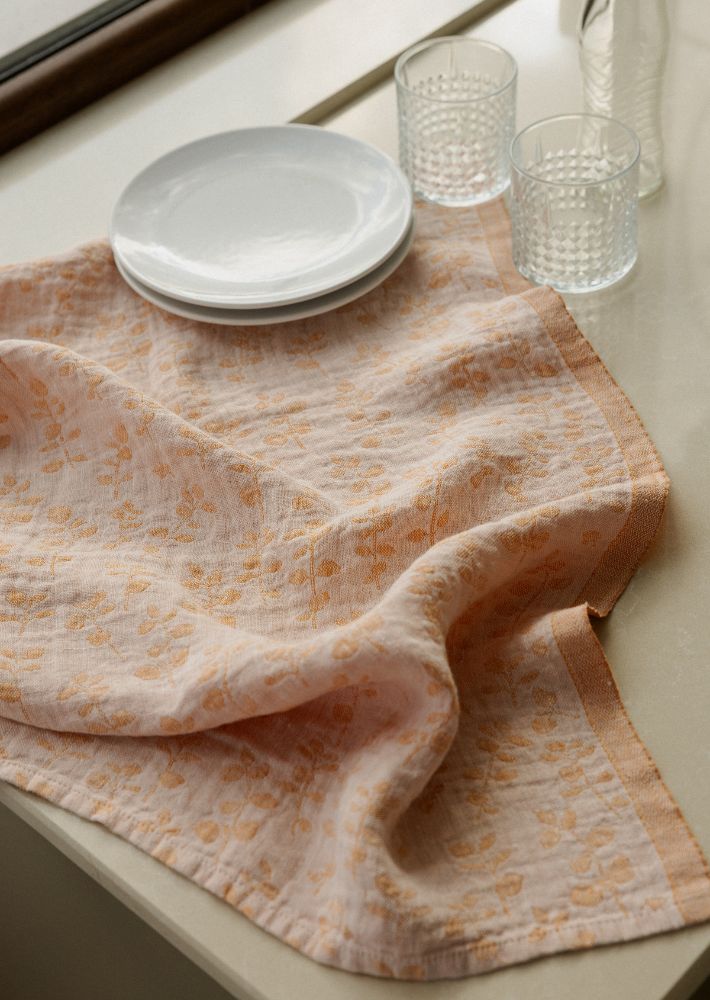 毎日の食卓を彩り、キッチンでも道具として活躍する、正方形のリネンクロスです