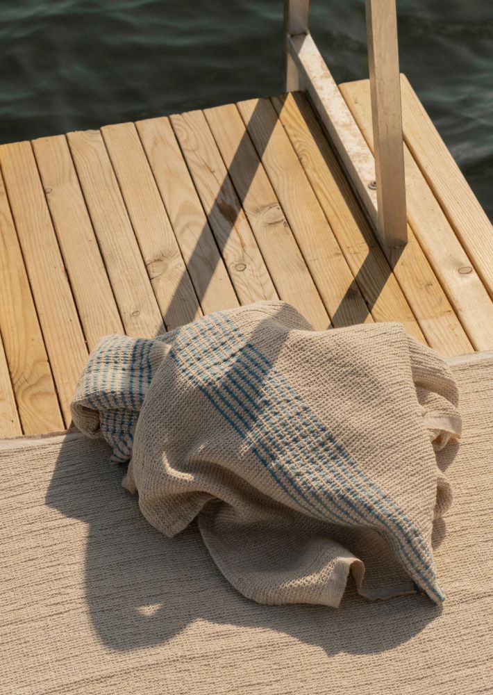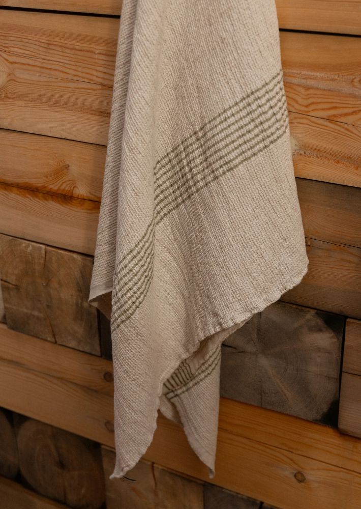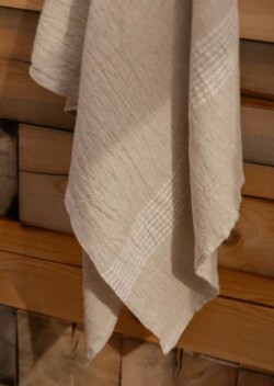 PURO(プーロ)は、リネン・テンセル・コットンを組み合わせた素材で作られた、さりげないストライプが特徴のタオルです。ラプアン カンクリが開発したこの素材は、ワッフル織り構造によって高い吸水性を備えています。タオルの両端にあしらわれた控えめなストライプが、クラシックな質感に軽やかなリズムを添えています。