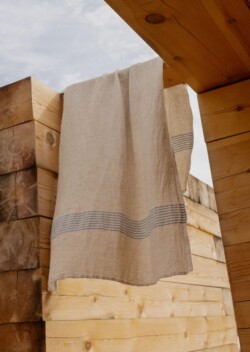 PUROのバスタオル(大判サイズ)は、体をすっぽり包み込めるゆったりとした大きさが魅力です。入浴後やサウナ、スイミングの後にも心地よく使えます。横になれるほどの大きさがあり、必要であればタオルに包まれたまま着替えることもできます。吸水性は製造工程の洗い加工の段階ですでに引き出されているため、購入後すぐに快適に使用可能です。リネンとテンセルの製品は吸水性が高く乾きも早いため、衛生的にお使いいただけます。